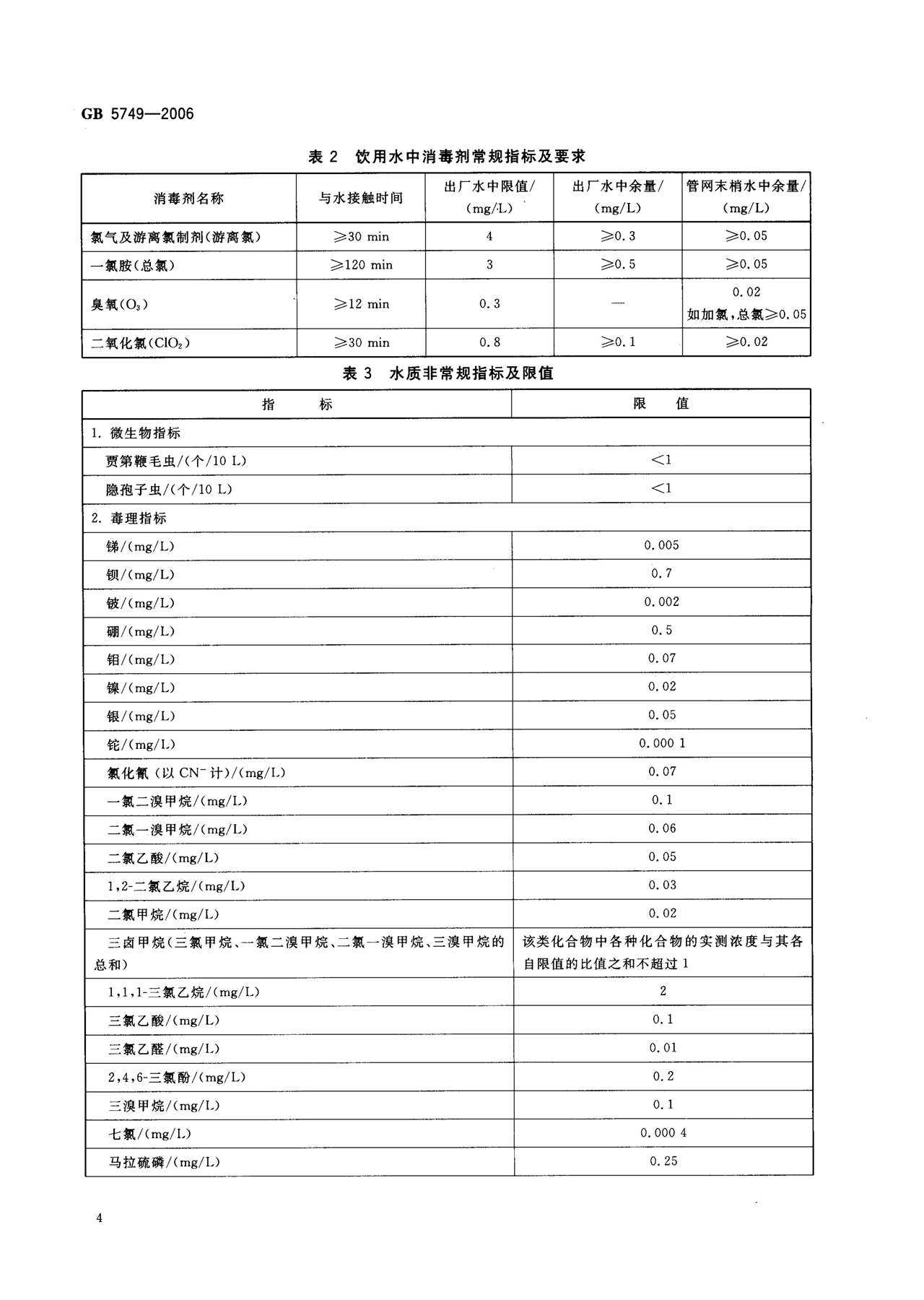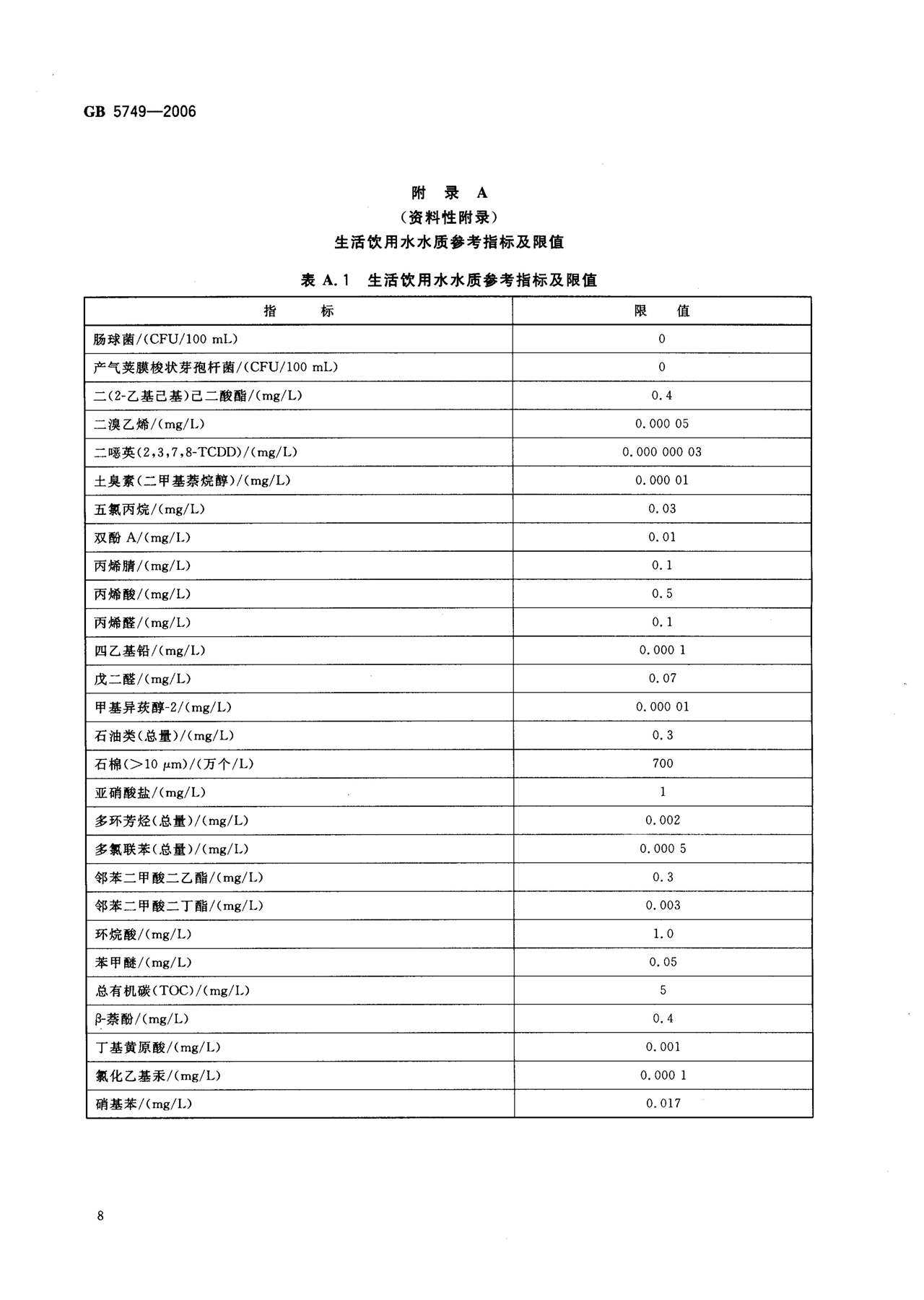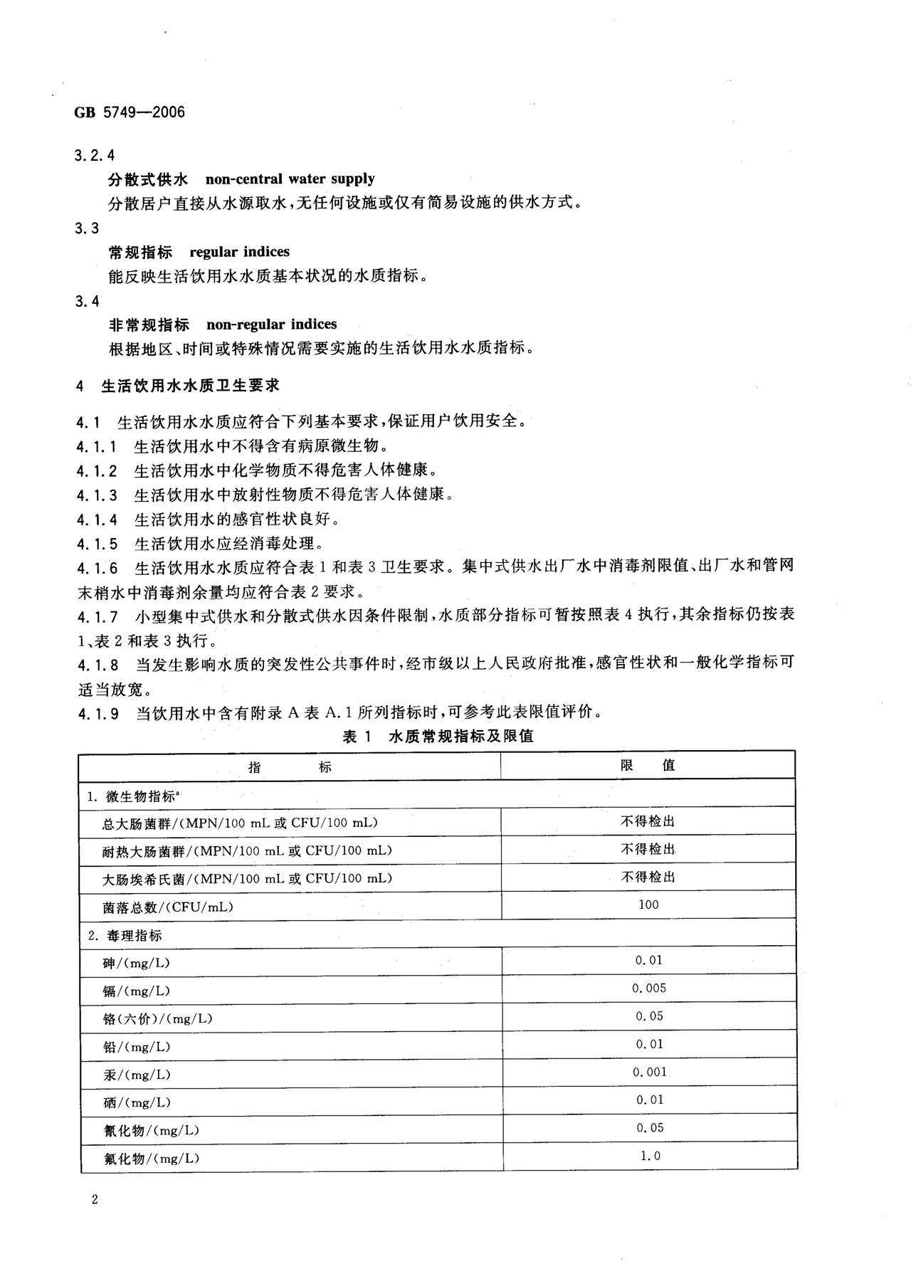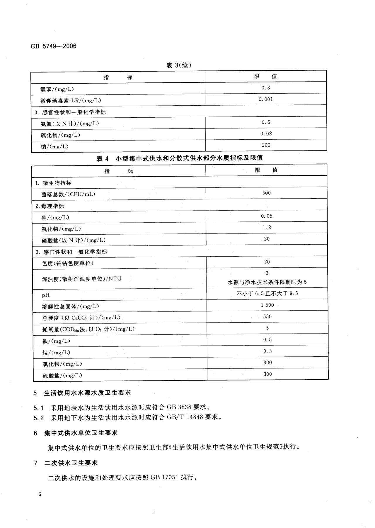 GB 5749-2006 生活饮用水卫生标准